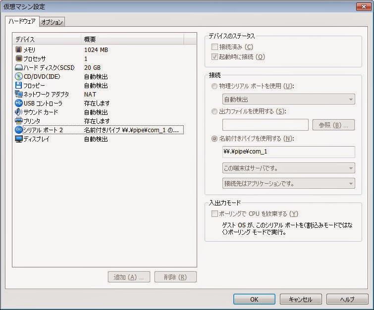 忘備録あれこれ Linux On Vmware シリアルポートの作成 teratermで接続