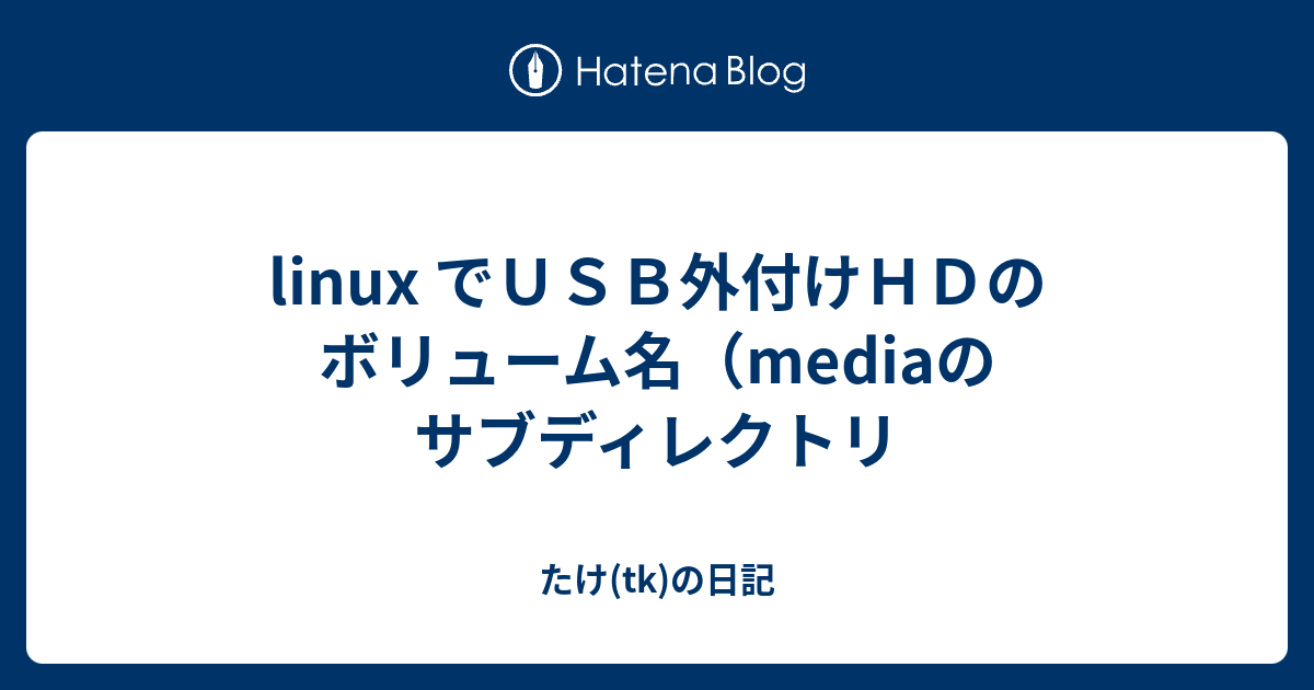 Linux でusb外付けhdのボリューム名 Mediaのサブディレクトリ たけ Tk の日記