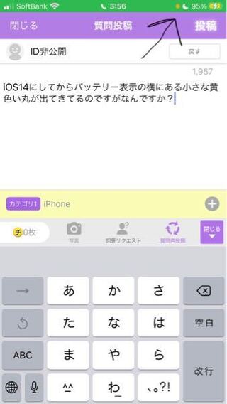 Ios14にしてからバッテリー表示の横にある小さな黄色い丸が出てきてるのですが Yahoo 知恵袋