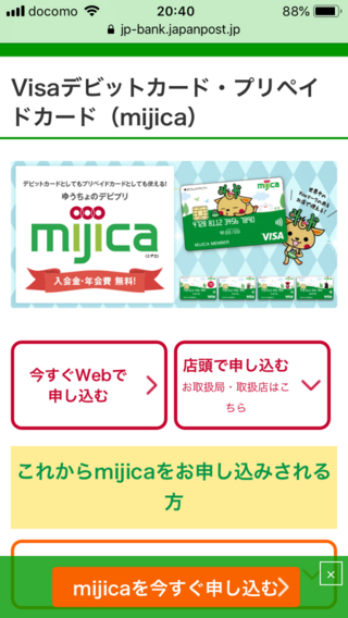 ゆうちょ銀行 Mijica プリペイド機能付きvisaデビットカード の口コミ 評判 デビットマニア