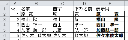 参加者の苗字と名前を分離する 選手名を均等な大きさで表示する