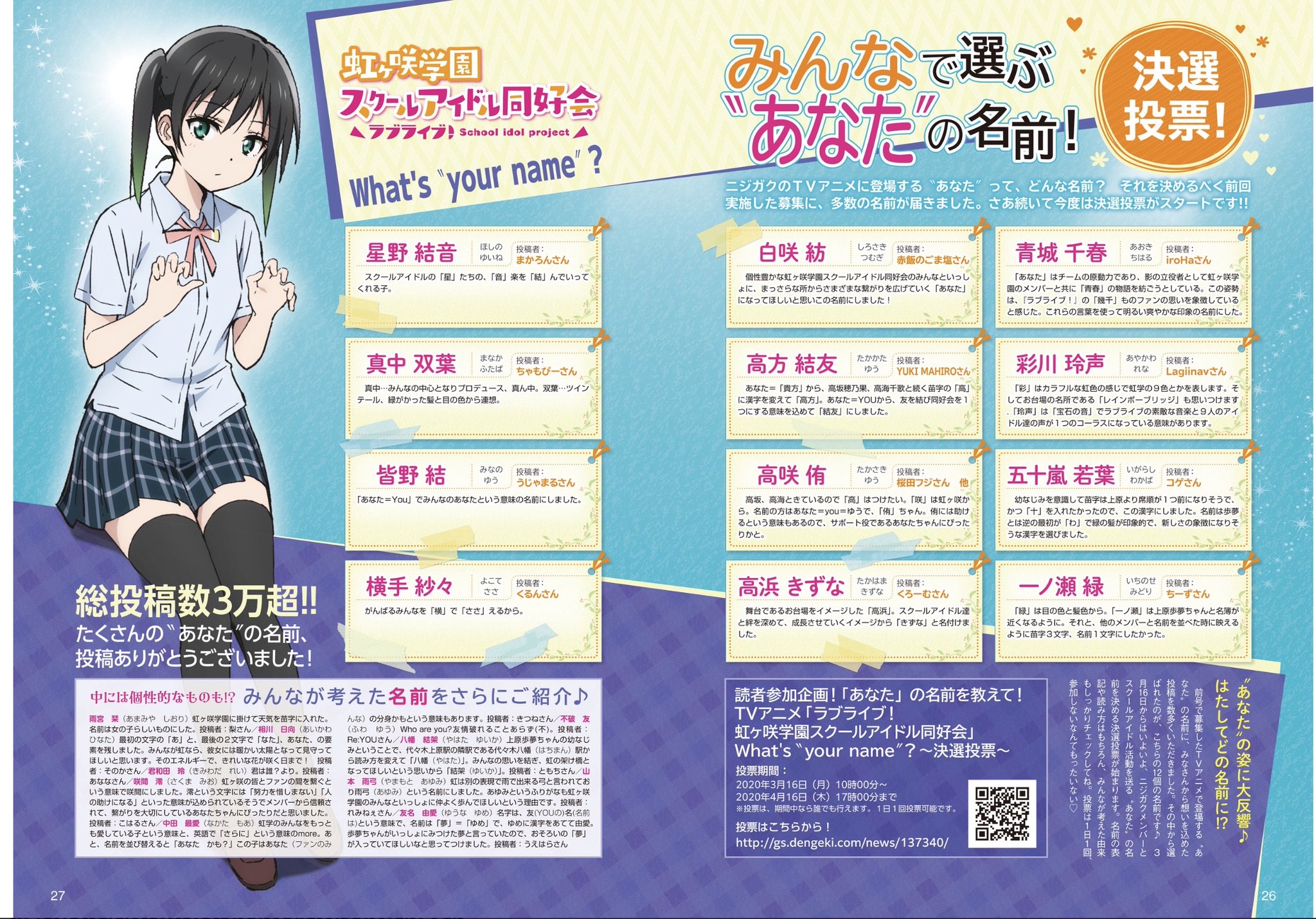 Love Live Idol Story On Twitter A Voting Took Place To Pick Anata Chan S Name The Protagonist Of Sifas In The Story The Finalist Names Have Just Been Revealed Which Name