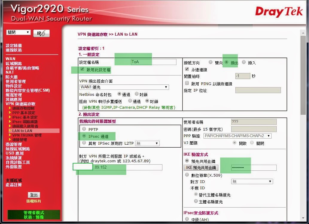 寫寫筆記 2台vigor 2920建立lan To Lan Vpn Ipsec