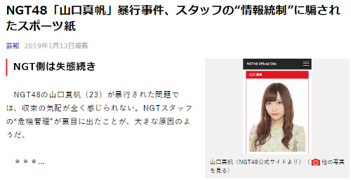 Ngt48 山口真帆 暴行 犯人 名前. 1 名前 名無し48さん. Ngt48の名前見たくないし聞きたくない ngt48って片方のエンジンとウイングが終わってるのに無理矢理飛び続けてる感じで痛々しい. 関連記事 ngt48山口真帆さんファンに襲われる事件が発生メンバーに居場所をチクられたのが原因か 元ngt山口真帆さんへ暴行した男性ファンへaksが3000万の賠償求めた訴訟謝罪文提出と数百万円の支払いで和解 山口真帆美魔女役で映画初出演初主演 人気少女漫画ショコラの.