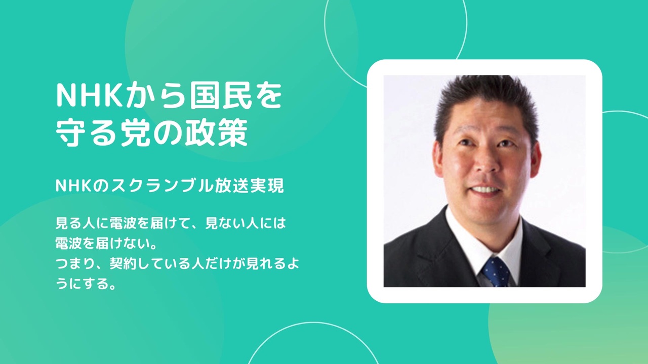 政見放送 立花 孝志 他3名 全国比例区 Nhkから国民を守る党 最初の自民党テロップ削除版 ニコニコ動画