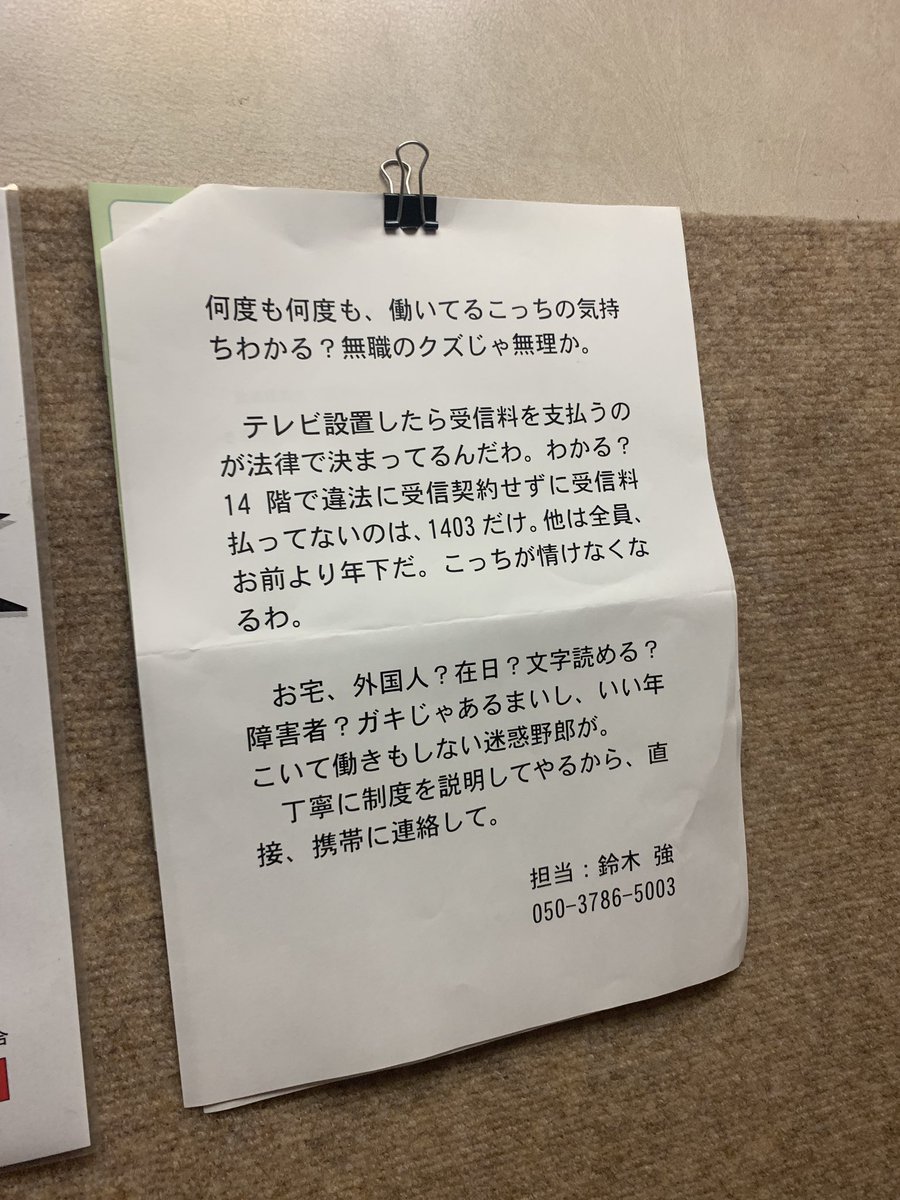 Nhk集金人 受信料未払い者に 働いてるこっちの気持ちわかる 無職のクズじゃ無理か Togetter
