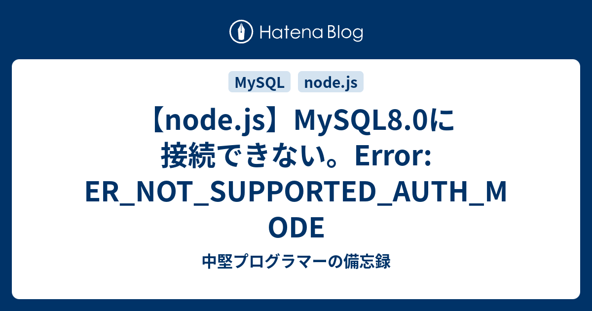 Node Js Mysql8 0に接続できない Error Er Not Supported Auth Mode 中堅プログラマーの備忘録