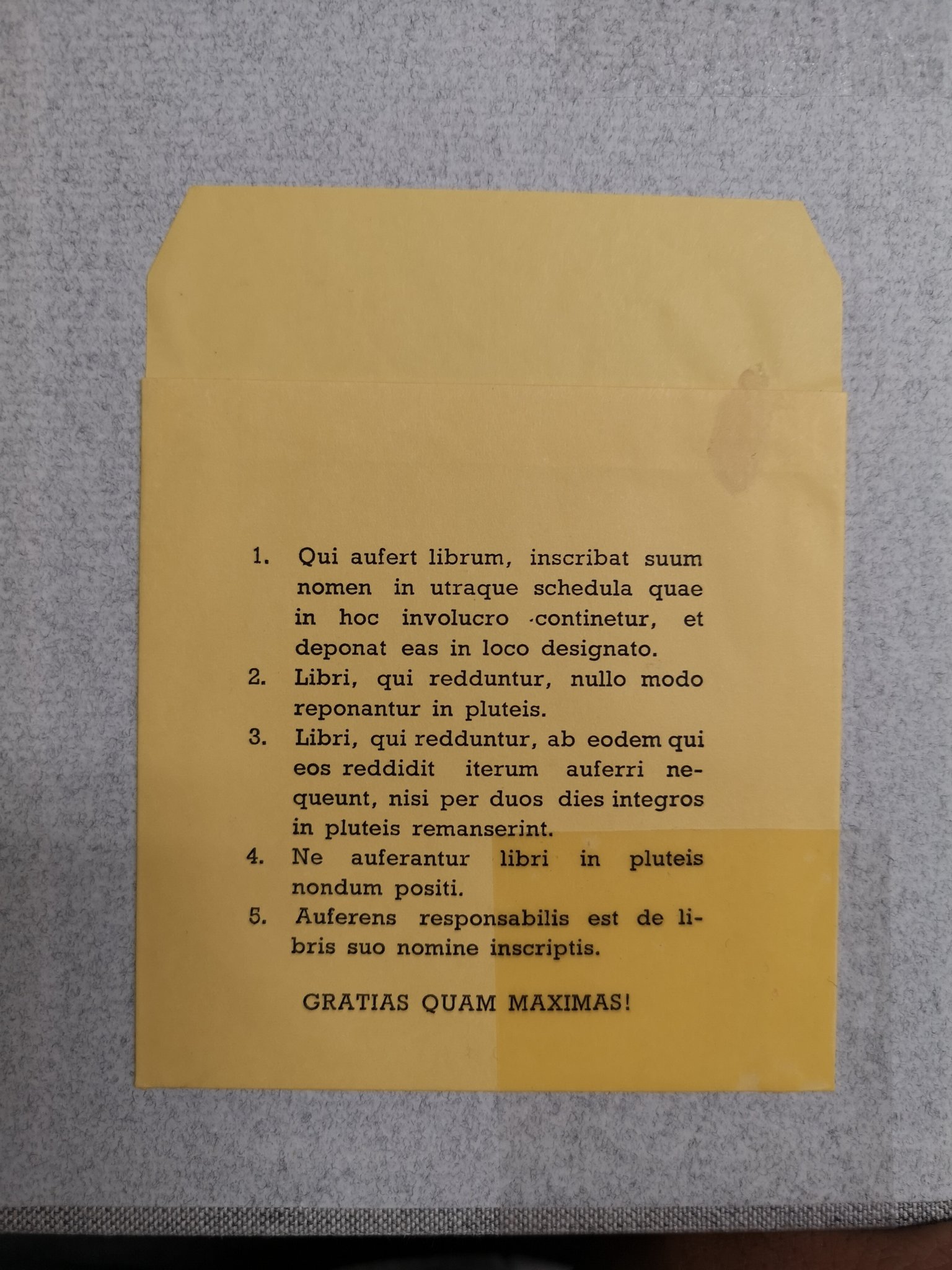 Yeussquai K On Twitter 某イエズス会大学で借りた本 昔の貸出票入れの注意書きがなんとラテン語