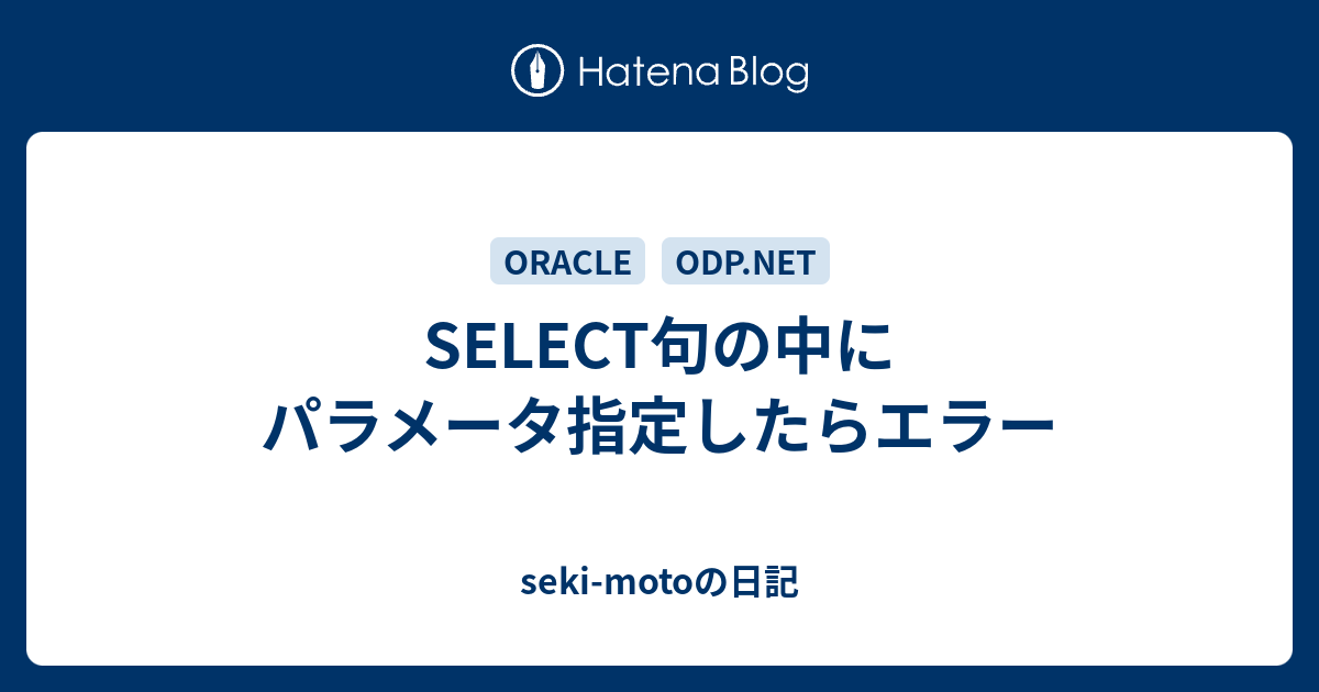 Select句の中にパラメータ指定したらエラー Seki Motoの日記