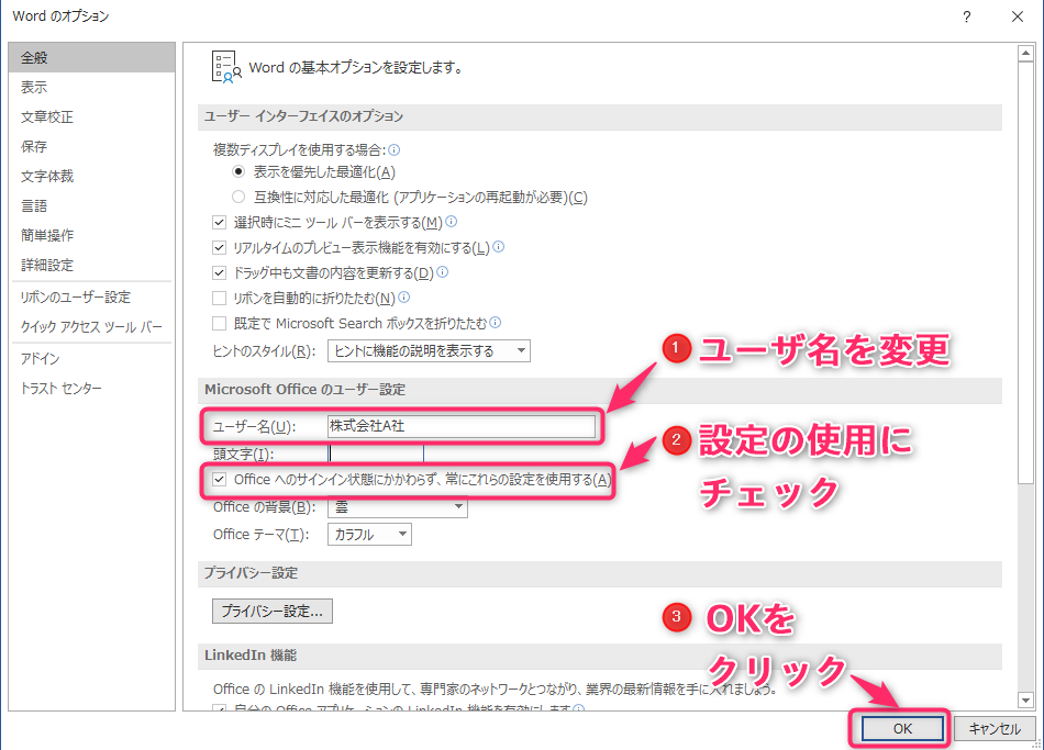 ユーザー名とイニシャルを変更する Office サポート
